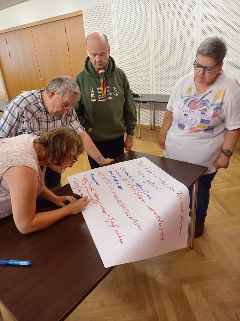 Wir sprechen mit den Veranstalter:innen, werten unsere Checklisten aus und senden den Veranstalter:innen Ergebnisse und Hinweise für mögliche Lösungen, schreiben auf Instagram und facebook kurze Berichte zu unseren Ausflüge.